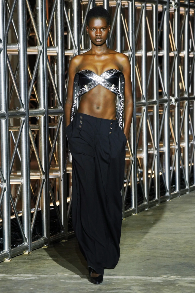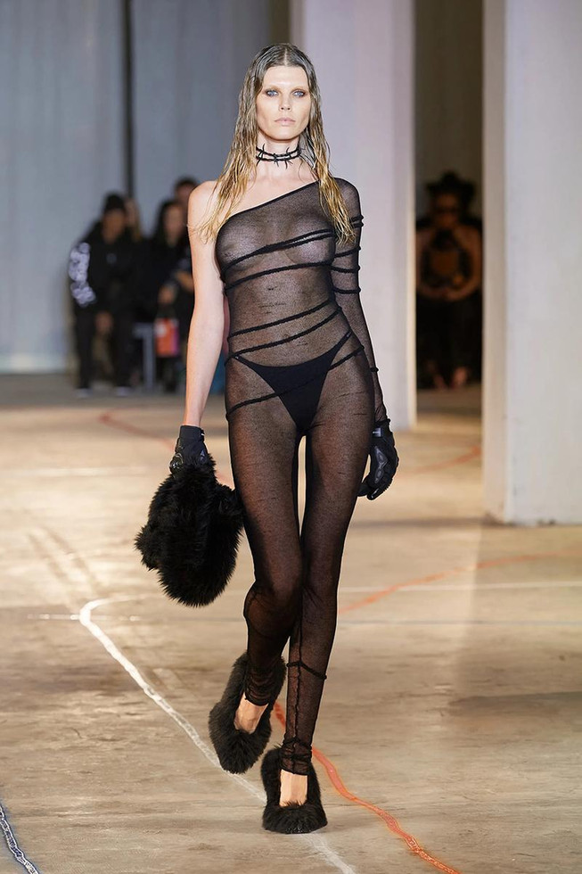 In true fashion, Dion Lee’s NYFW had rave-goers jumping up and down for the collection. Inspired by alter egos, this collection was meant to be a second skin in shedding your outer layers and getting closer to the self. Models wore black netted shirts under-inflated puffer jackets and reptile skin patterns etched into footwear and accessories alike. Base layers were deconstructed, tattered, and falling off to show the death of one's appearance while finding a more true self. A master at contrasting delicacy with aggression and allure with hostility, this collection was the perfect capsule for Lee. Pieces highlighted the bold underside of the skin someone may not show willingly, and items like the thigh-high reptilian patterned boots, or the tight-fitted fuchsia dress with the pattern of a belly of a snake, were the perfect manifestation of this mantra.