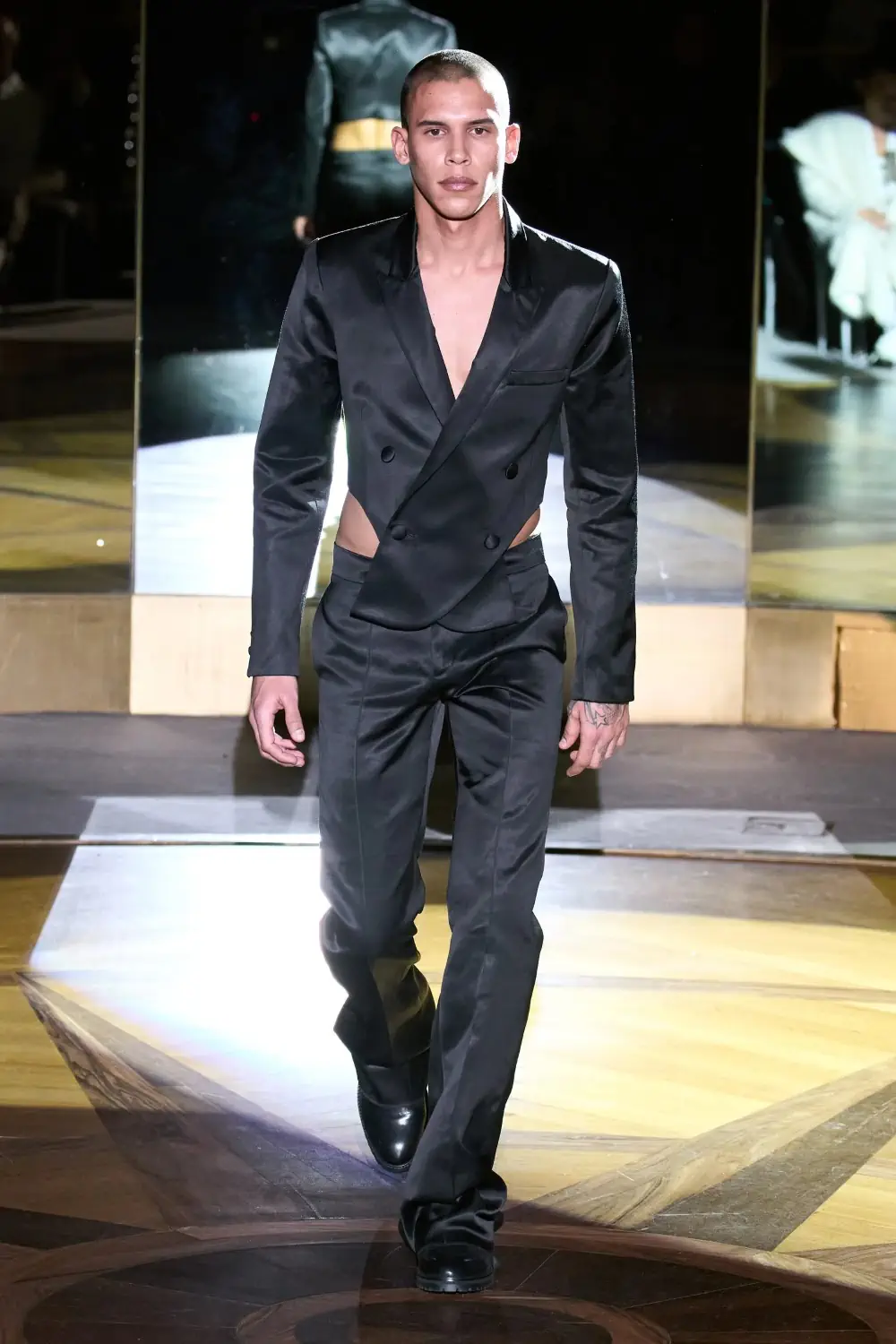 Built from the ground up, LaQuan Smith created a national luxury brand pairing with Bergdorf Goodman and Neiman Marcus. So it was only fitting the show opened with Frida Aasen flinging her LaQuan Smith coat down from the Rainbow Room’s balcony to the sound of Dynasty actress Joan Collins' iconic line: “I now own this house”. Inspired by television like Dynasty, Smith’s collection emulated the vivacity and vibrance of the ’80s. Using warmer rich tones and careful tailoring, Smith brought to life the nostalgia of the 80s with metallic pieces dresses, fur coats, and bedazzled bodysuits. The Menswear featured a cropped men's suit jacket and sheer button-downs while keeping with the theme of luxury, sophistication, and sex appeal.