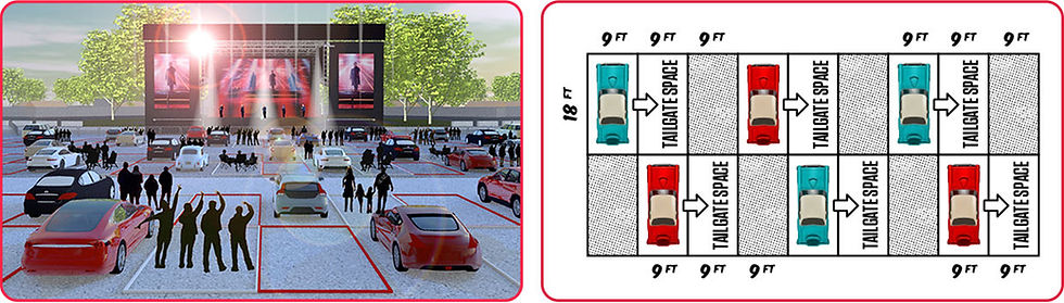 Attendees will be able to pull into the parking lot of the amphitheaters where the concerts are taking place with a maximum of four people to a car, and each car will be assigned a designated tailgating zone to get out and watch the show, eat, drink, etc. Attendees are encouraged to bring their own food, drinks, and chairs. But, according to Live Nation, a menu of hot food items and nonalcoholic beverages will be available for purchase.