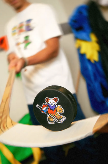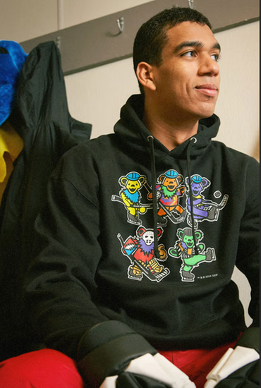 A mix of sports, streetwear, and rock music has melted together in a collaboration between clothing label MARKET and the famed rock band The Grateful Dead for a Sherwood Hockey equipment collection. In true Grateful Dead fashion, vibrant neons populate the collection through garments such as hoodies, t-shirts, and hockey sticks and pucks. The iconic dancing bears of the rock band make their appearance throughout the collection, only this time, they’re clad in hockey masks, pads, skates, and sticks. Hockey equipment features the same bear iconography atop hockey pucks and hockey sticks. The word “DEADWOOD” can be found engraved along the sticks as well. A co-branded MARKET and Sherwood t-shirt is another highlight of the collection, featuring a Grateful Dead bear crashing into another hockey player. Check out the collection on the MARKET website.