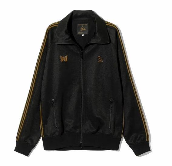 Drake’s label OVO has come together with Japanese brand NEEDLES for the first time ever to release a new collection. In this collection, NEEDLES brings its expertise in well-crafted tracksuits together with OVO’s expertise in quality loungewear. The seven-piece capsule features an array of basics, such as track jackets incorporating both labels’ logos, the NEEDLES butterfly and OVO’s owl, and colored t-shirts mixing together the butterfly emblem with OVO lettering. Track pieces are available in either black or white with gold detailing on the sides of the jacket, sleeves, and stitched logos. Track pants follow suit, making perfect co-ord options. A special mohair cardigan stands out from the rest of the collection, printed with “October’s Very Own,” the full OVO name. A dark plaid button-up shirt finishes out the collection with co-branding and distressed details. As for accessories, pick up a light grey bandana printed with the OVO owl surrounded by NEEDLES butterflies. Check out the collection on the NEEDLES website and the OVO website.