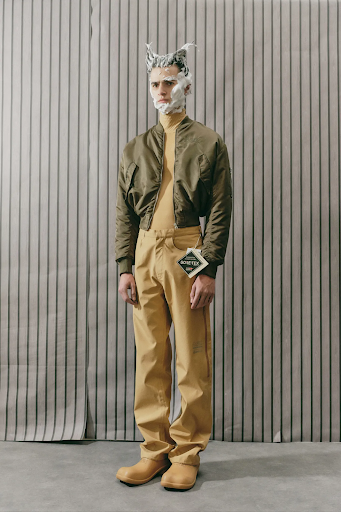 Maison Margiela’s latest collection for MM6, the diffusion line from the fashion house, finds the urban, casual nuances that live within couture fashion to create sophisticated yet witty looks. Slight tailoring details on classic garments give the pieces new attitudes that blur the lines between maximalism and minimalism, especially the ones derived from the Solomon collaboration made from bonded Gore-Tex. Though staying true to MM6’s purpose, the refined looks utilize unsuspecting details to evoke a more elevated feel - like using the lining from a dress to hook around the neck and shift the dress’ volume or simply creating waistbands with a tulip effect on pants to distract from an unvaried basic and further inspire personality within everyday fashion.